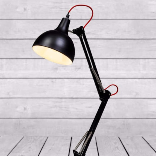 Matt Black Traditional Desk Lamp (Red Fabric Flex)