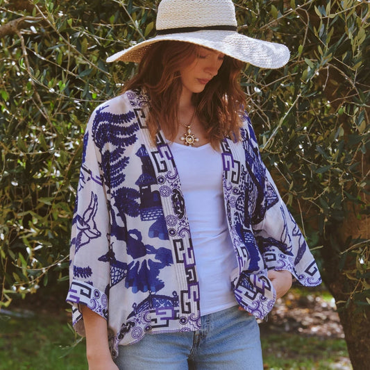One Hundred Stars - Tropical Blue Kimono