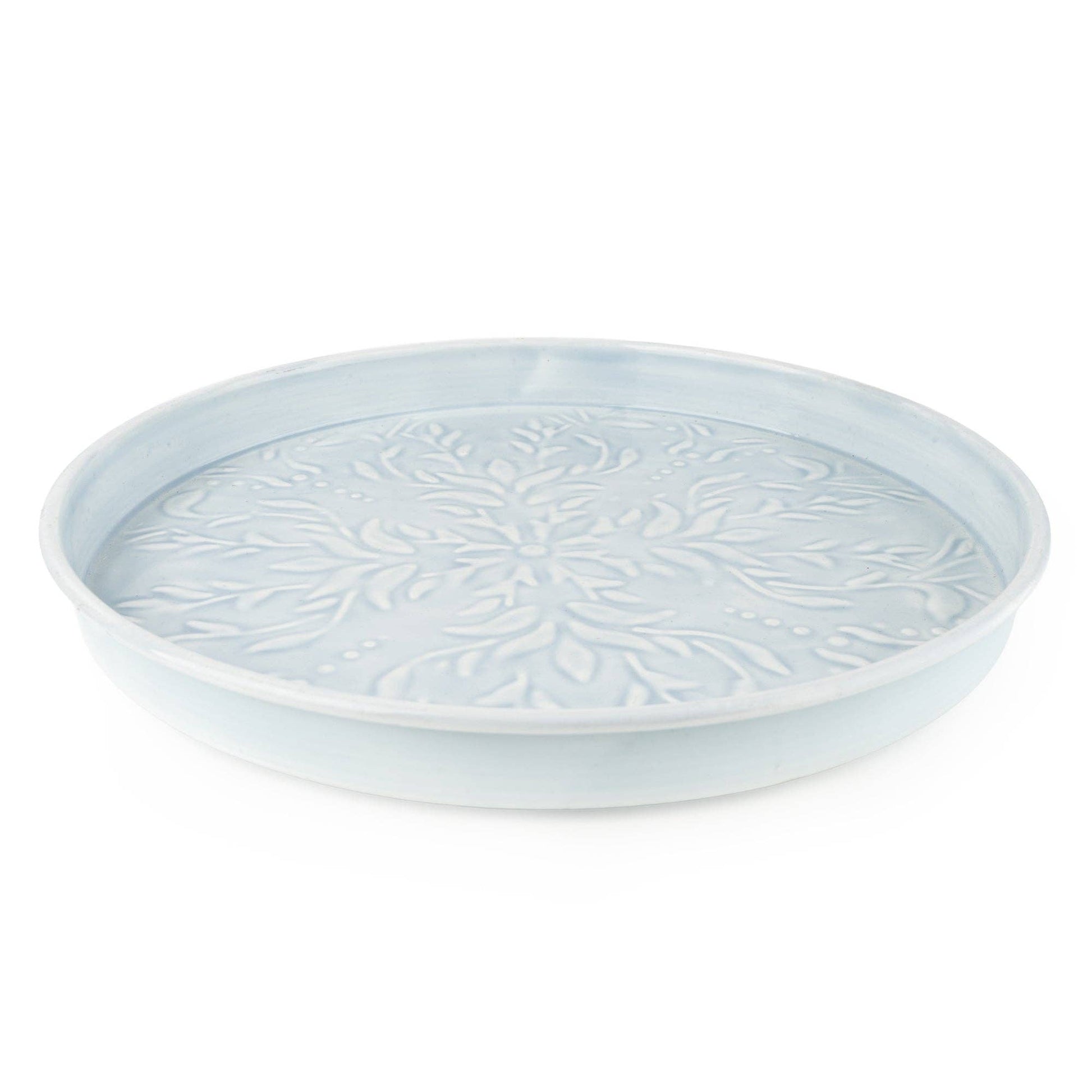 32cm Round Embossed Metal Tray - Blue