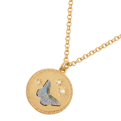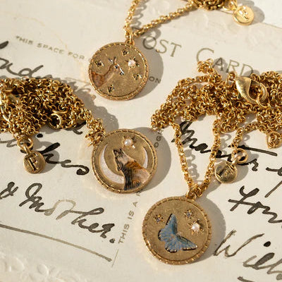 A hand-painted enamel pendant showcasing a butterfly spirit guide delicately dangles from a fine necklace chain. The butterfly, a symbol of transformation and rebirth, serves as a reminder of the endless possibilities within you. It encourages embracing change with grace and courage, guiding you to spread your wings and soar to new heights in your personal journey. This spirit guide represents the beauty of evolution and the power of resilience, inspiring you to live your life with vibrancy and fluidity.