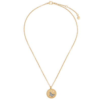 - Pendant: 22ct Worn-gold plated brass, zinc alloy, enamel