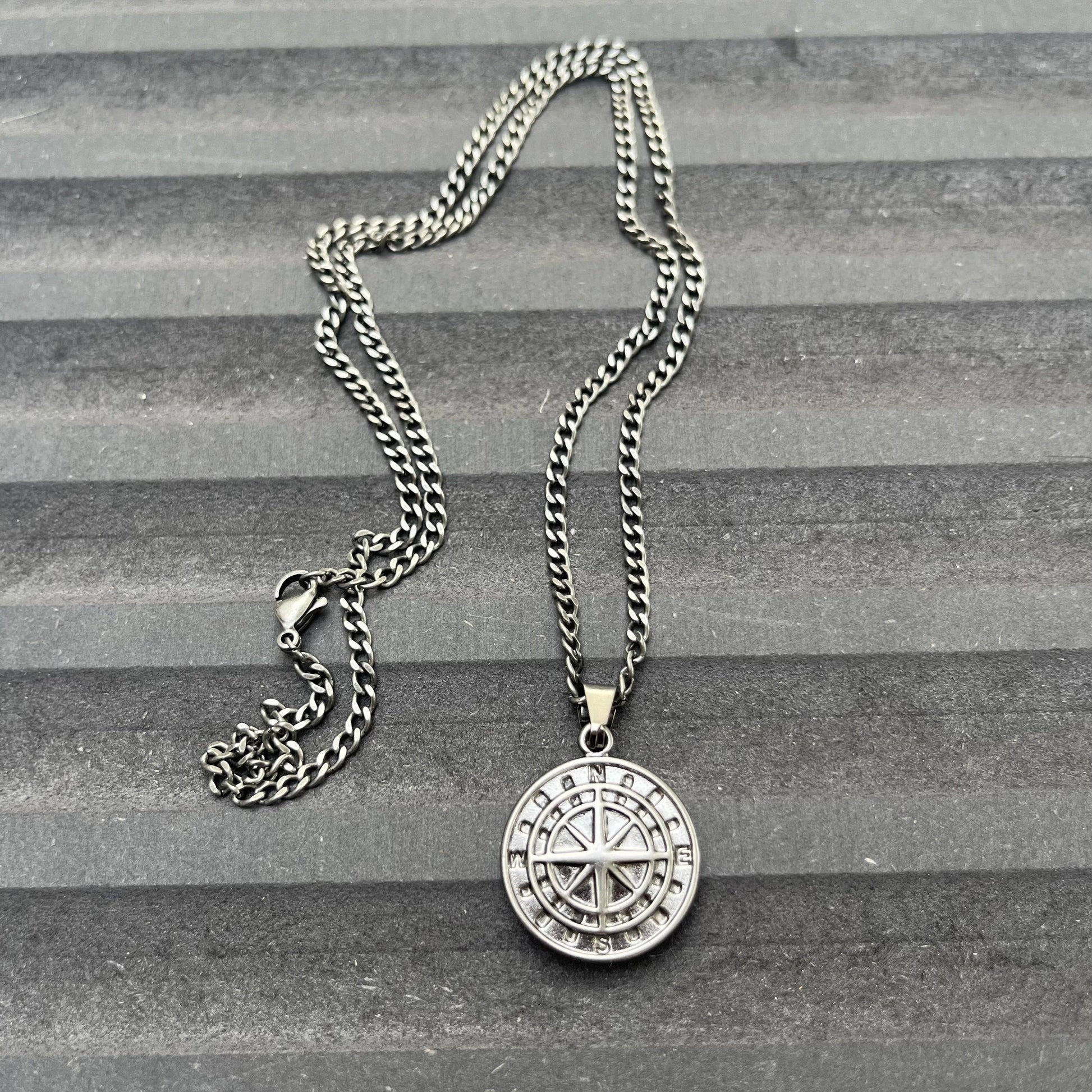This cool coin-shaped pendant isn't just a pretty face—it's made from tough-as-nails titanium steel that can handle whatever adventures you throw at it. Perfect for guys who like to wander (or just look like they might!), this playful compass design says "I'm directionally challenged but fashionably on-point!" Wear it peeking out from your shirt or proudly on display—either way, you'll be the north star of fashion in any crowd. Who knew navigation could be this fun?