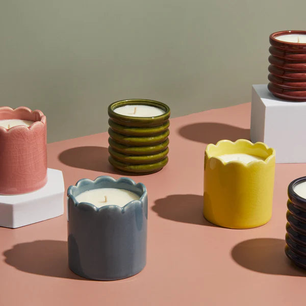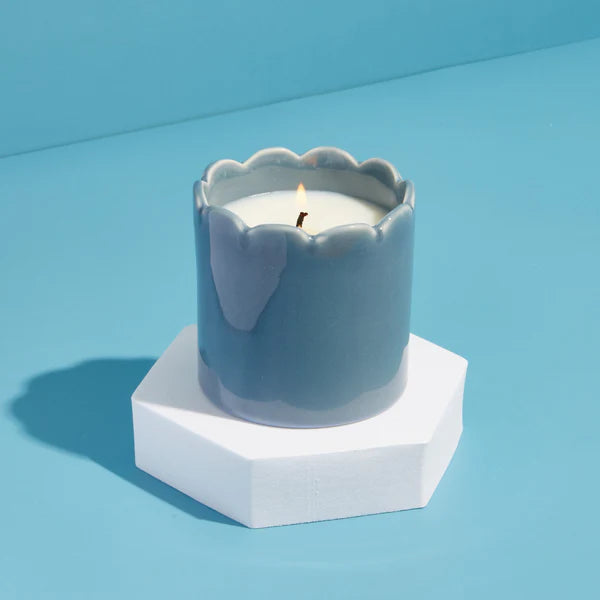 Contemporary Kiln Scalloped Sky Blue Candle - Amber & Bergamot