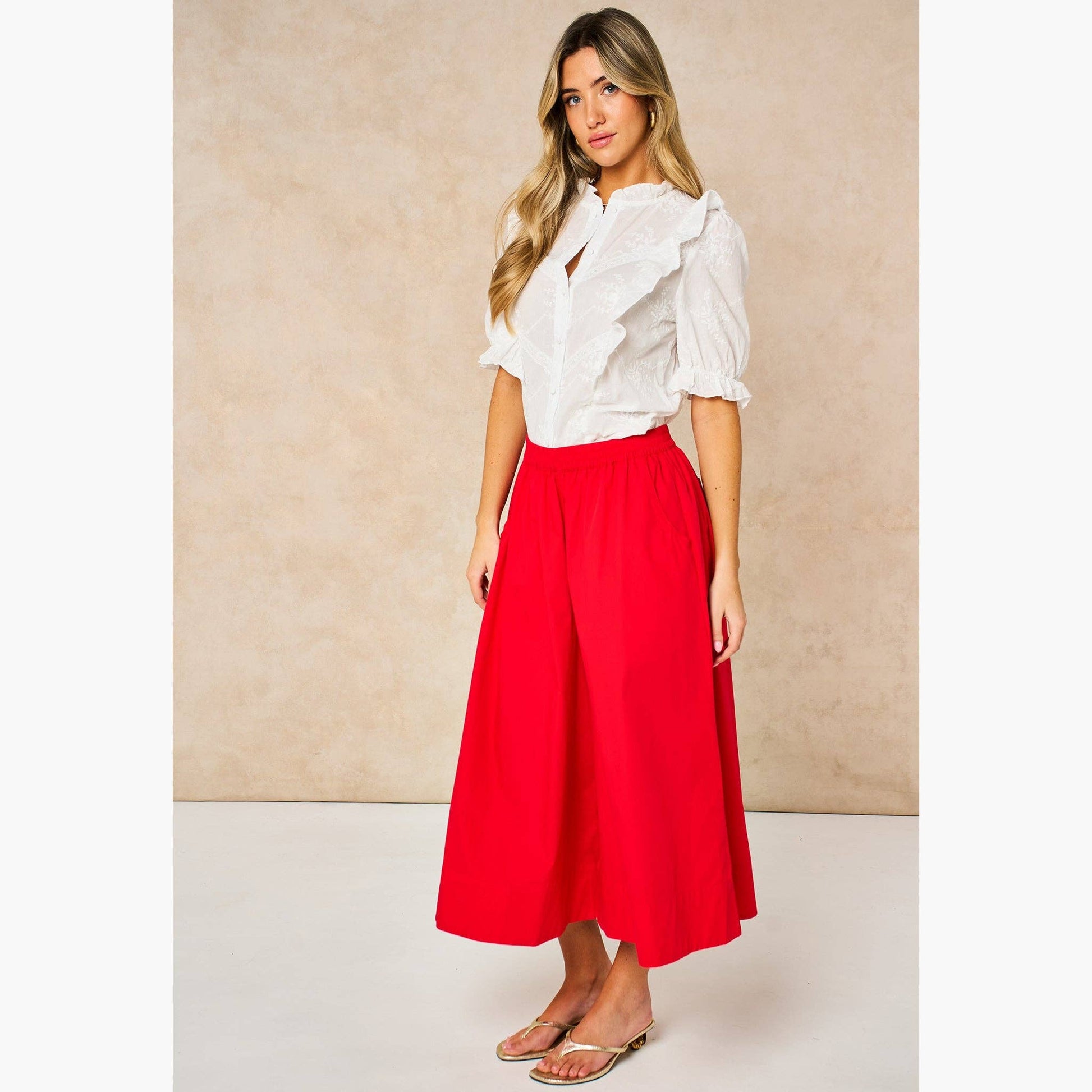 Cropped Wide Leg Cotton Trousers in Red: in 3 sizes