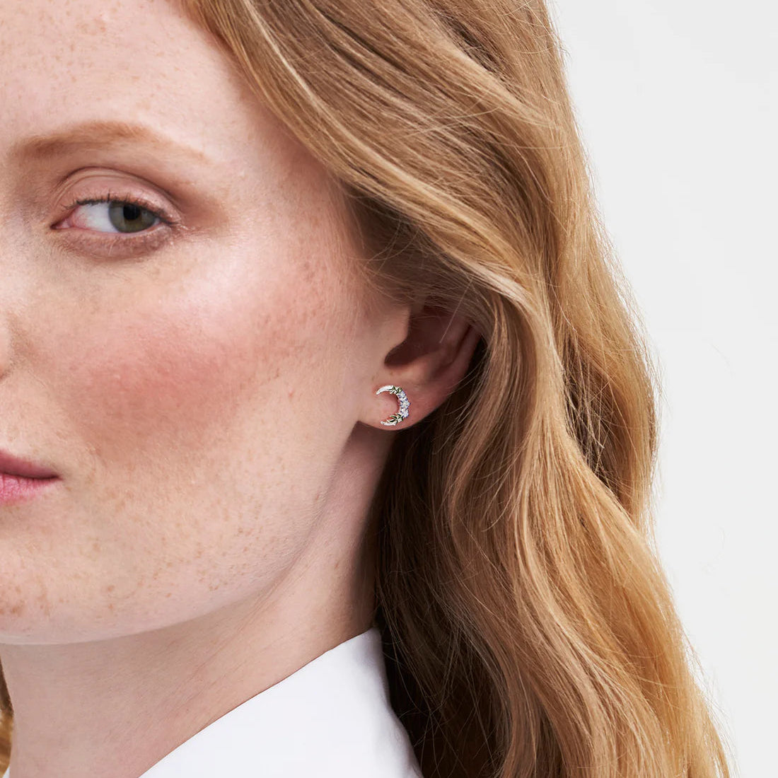 After dark is when the nightshade flower reveals its true beauty, reflected in these delicate stud earrings. Carefully hand-painted onto the enamel, the florals sit neatly atop the tiny crescent moons that have been crafted from sterling silver-plated brass and zinc. Magical and mystical, if you like your jewellery to have a vintage vibe, you'll want to wear these day and night.