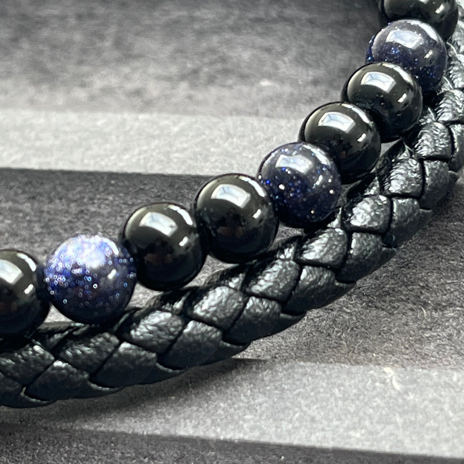 Elevate your style with the Jaipur Bracelet - Blue, featuring a double-banded leather strap for durability and comfort. A secondary beaded strap showcases striking blue moon-like beads, adding a unique and captivating touch.