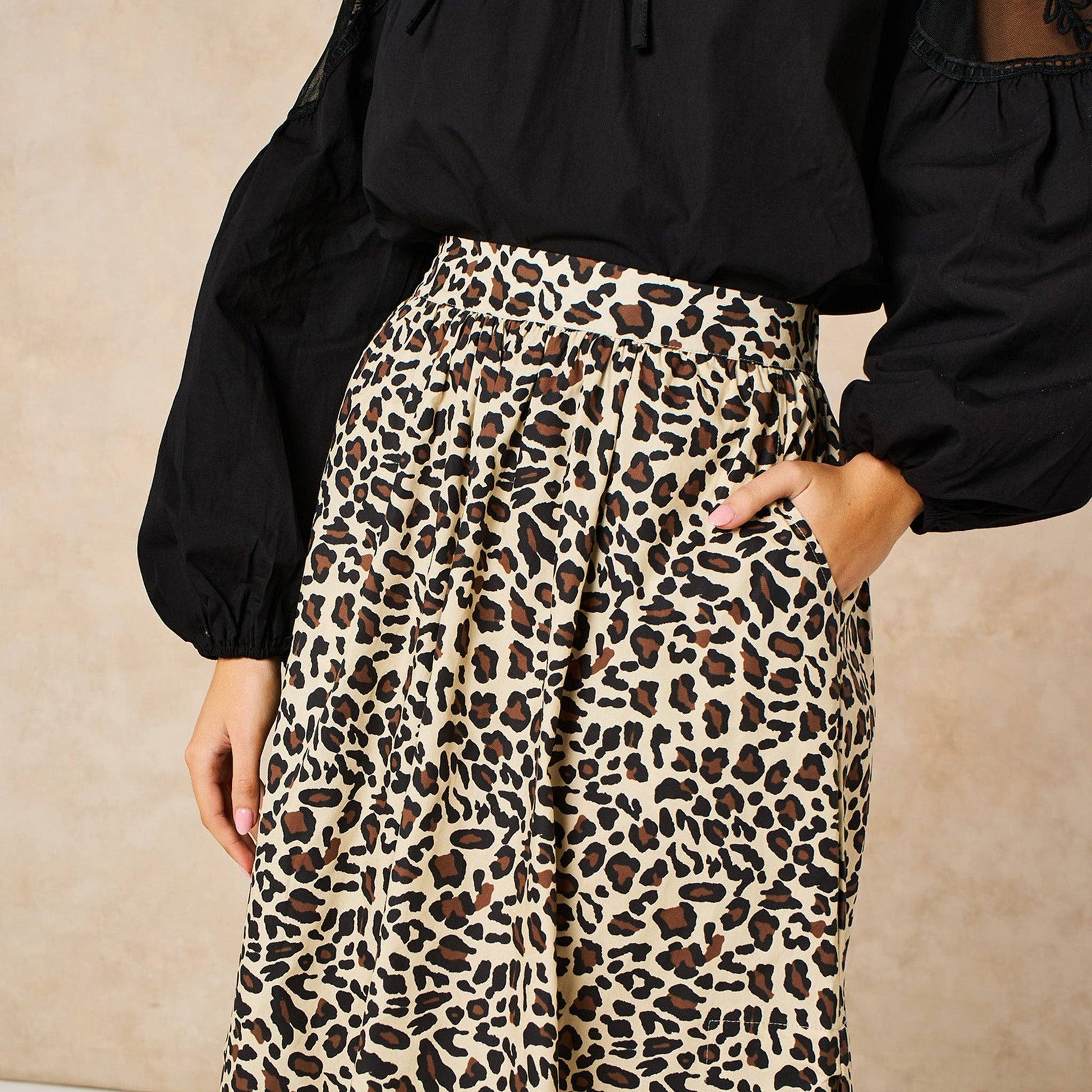 Leopard Print Cotton Midaxi Skirt in Neutral: Medium (UK 12-14)