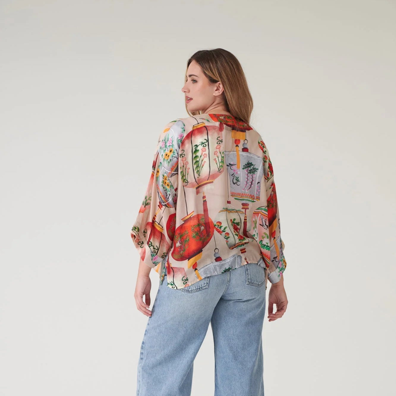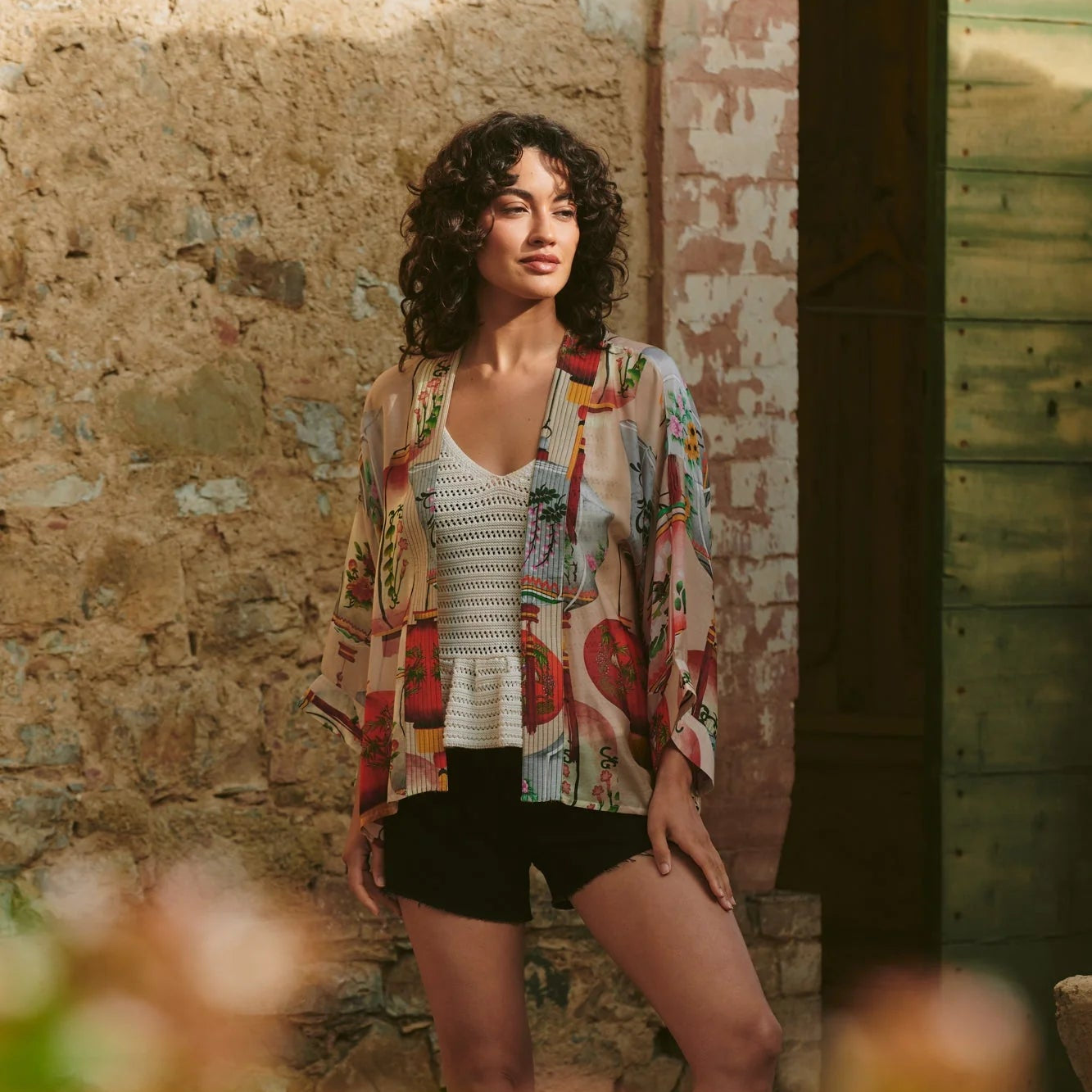 These bestselling kimono jackets have loose ¾ length sleeves, an open front and a lightly embroidered lapel. Pair with a matching camisole and your favourite jeans in summer or layer over a polo neck during the cooler months.