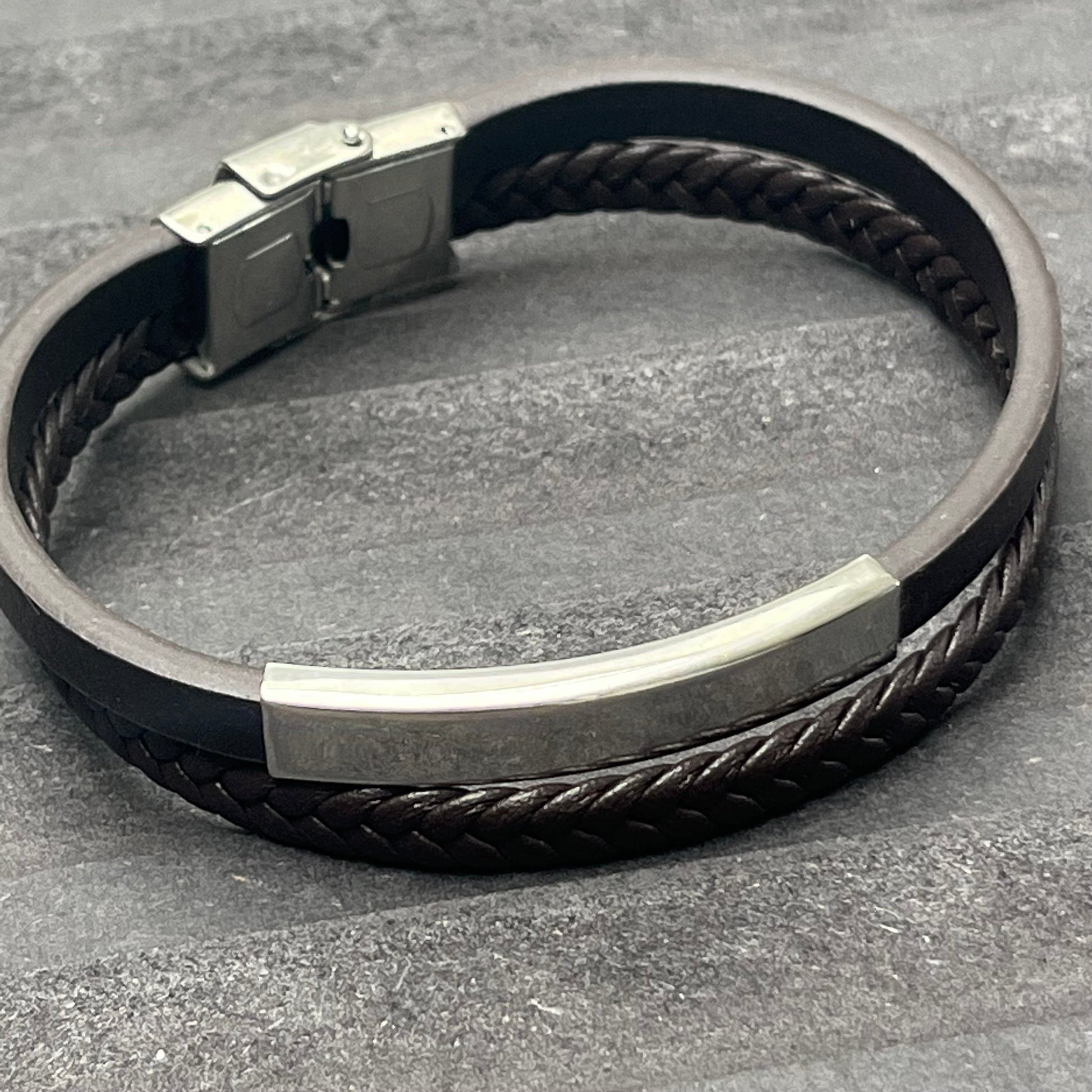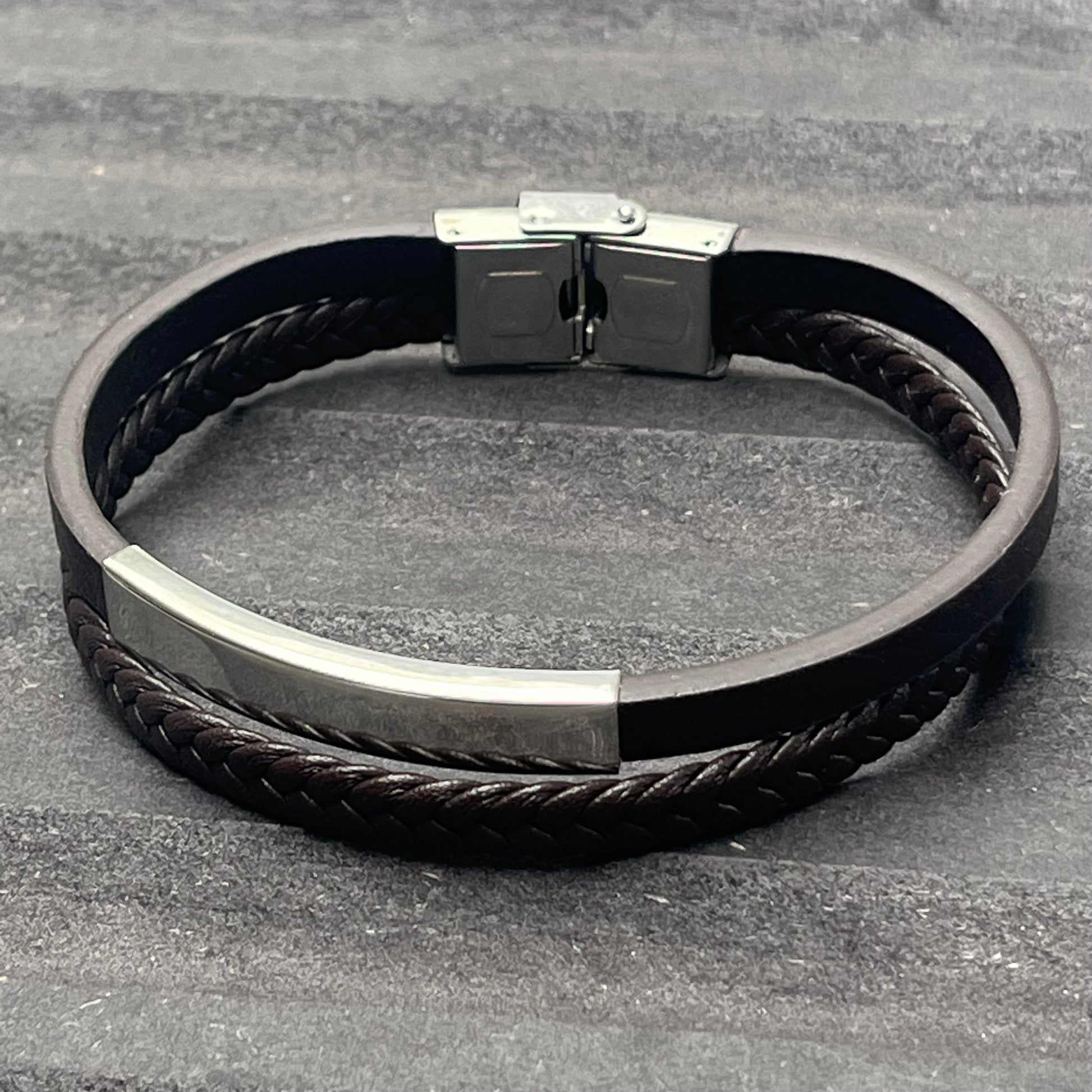 Expertly crafted, the St Tropez bracelet features a sophisticated double-layer design with genuine leather cord and stainless steel elements. This handmade leather bangle combines durability with style, offering a secure snap closure for easy wear. Available in classic black or rich brown, this versatile men's accessory elevates both casual and formal attire.