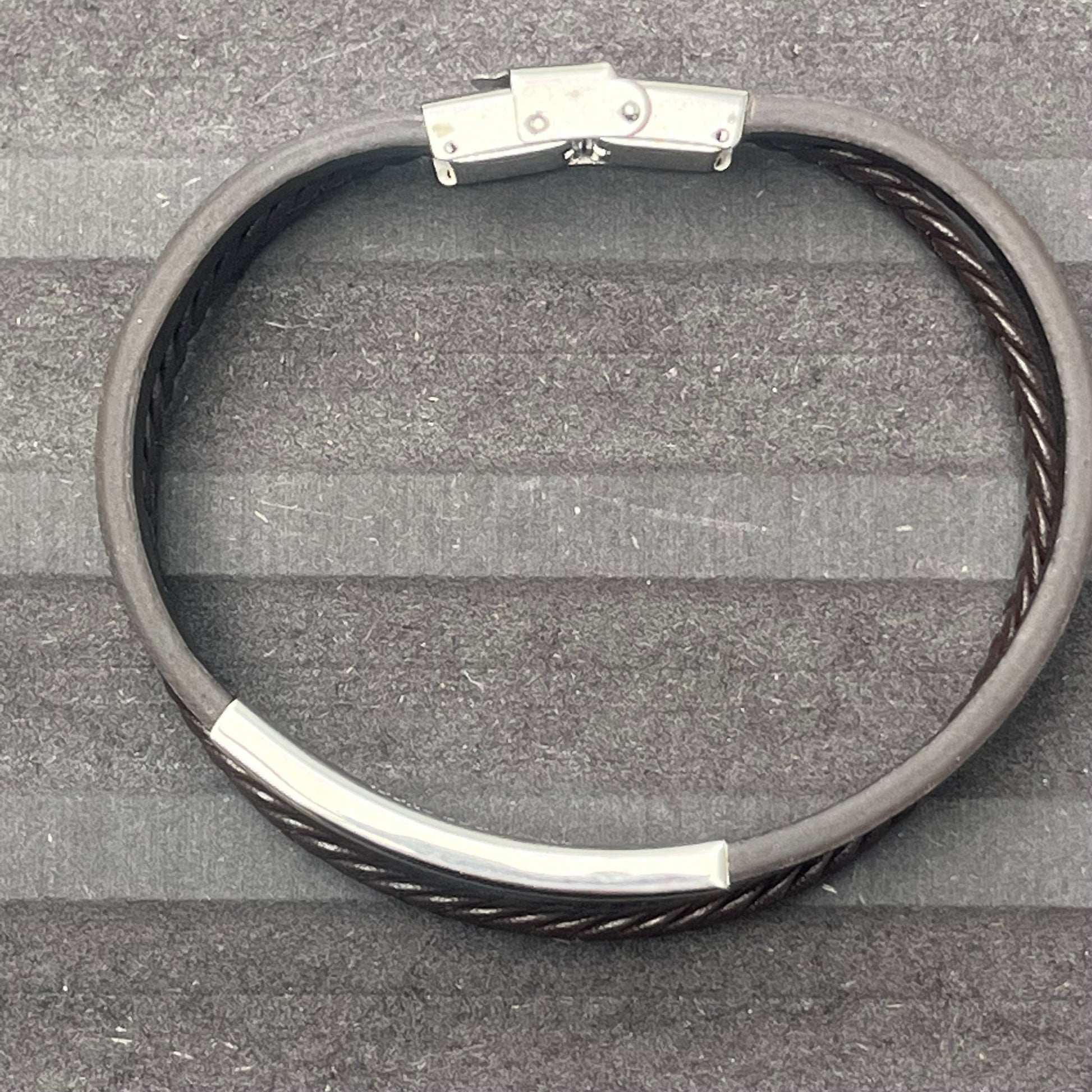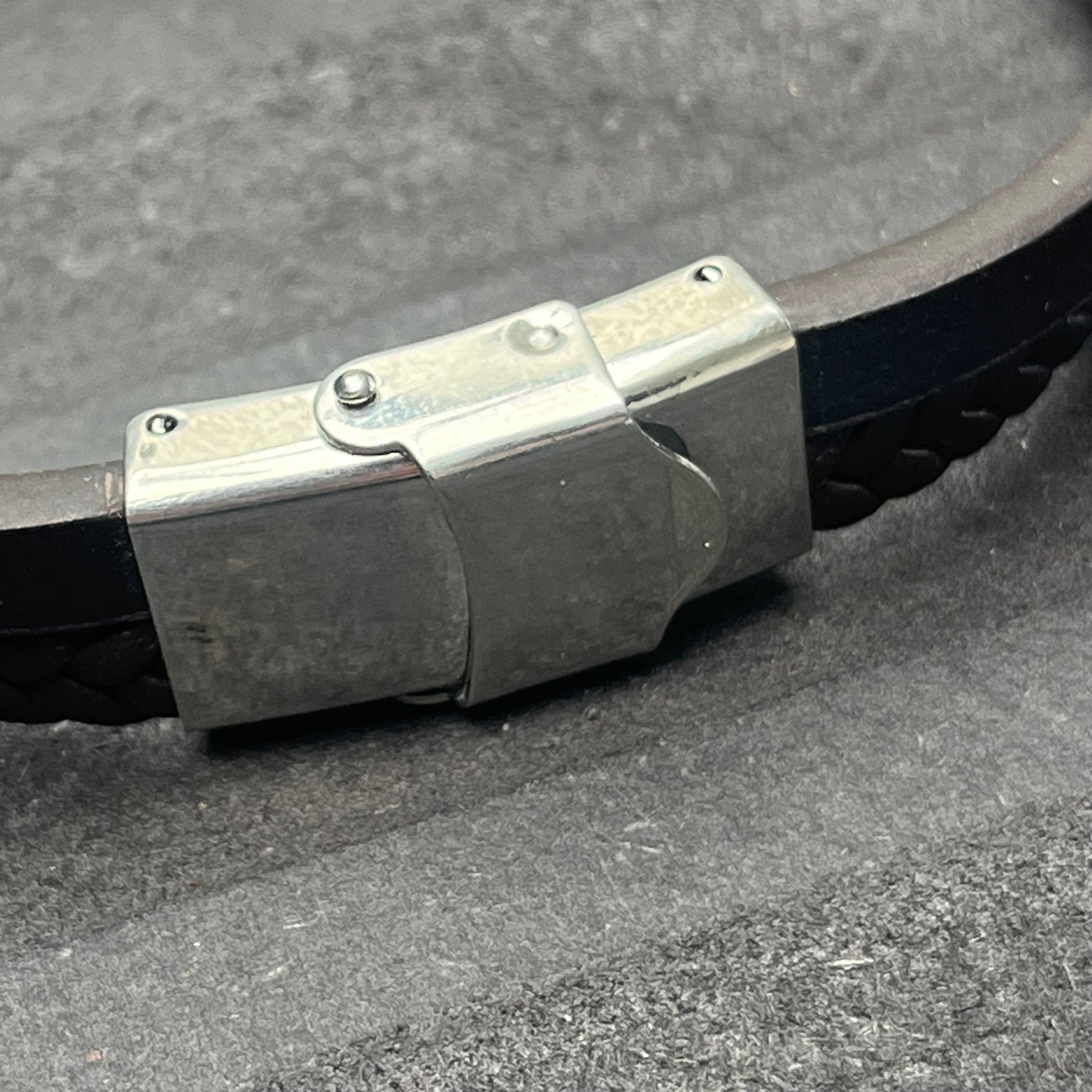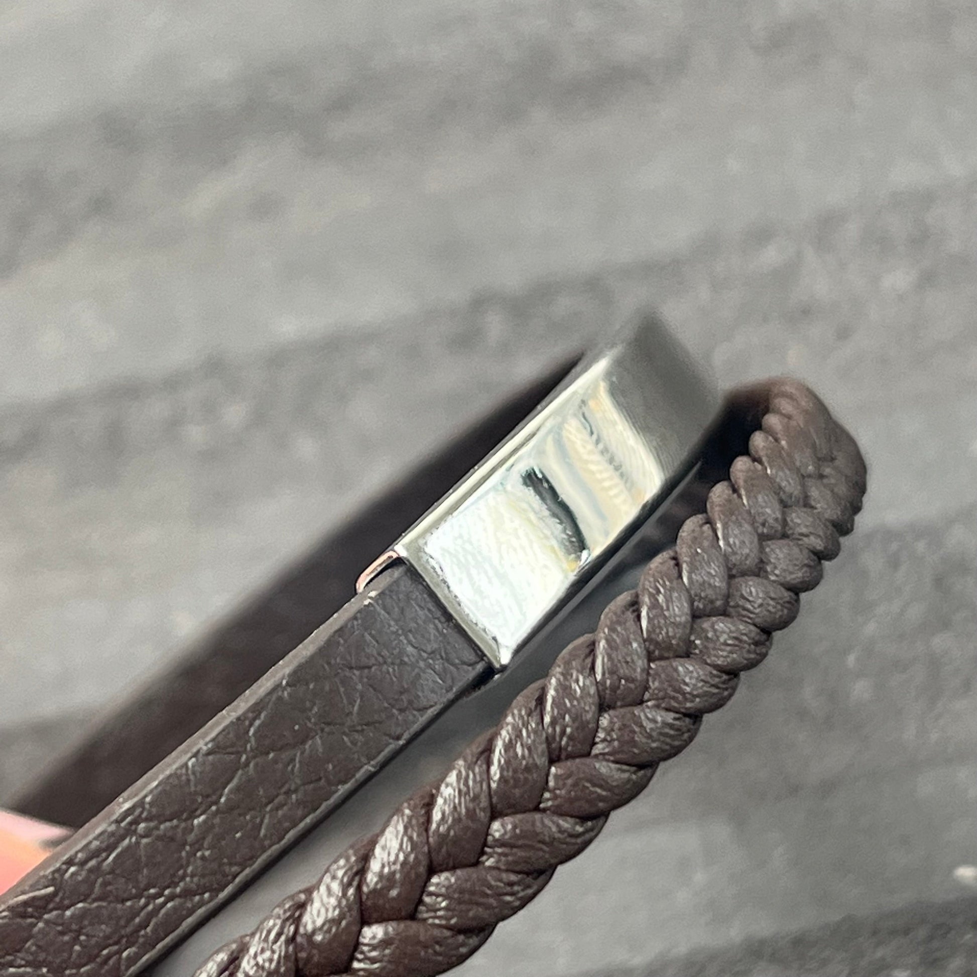 Expertly crafted, the St Tropez bracelet features a sophisticated double-layer design with genuine leather cord and stainless steel elements. This handmade leather bangle combines durability with style, offering a secure snap closure for easy wear. Available in classic black or rich brown, this versatile men's accessory elevates both casual and formal attire.