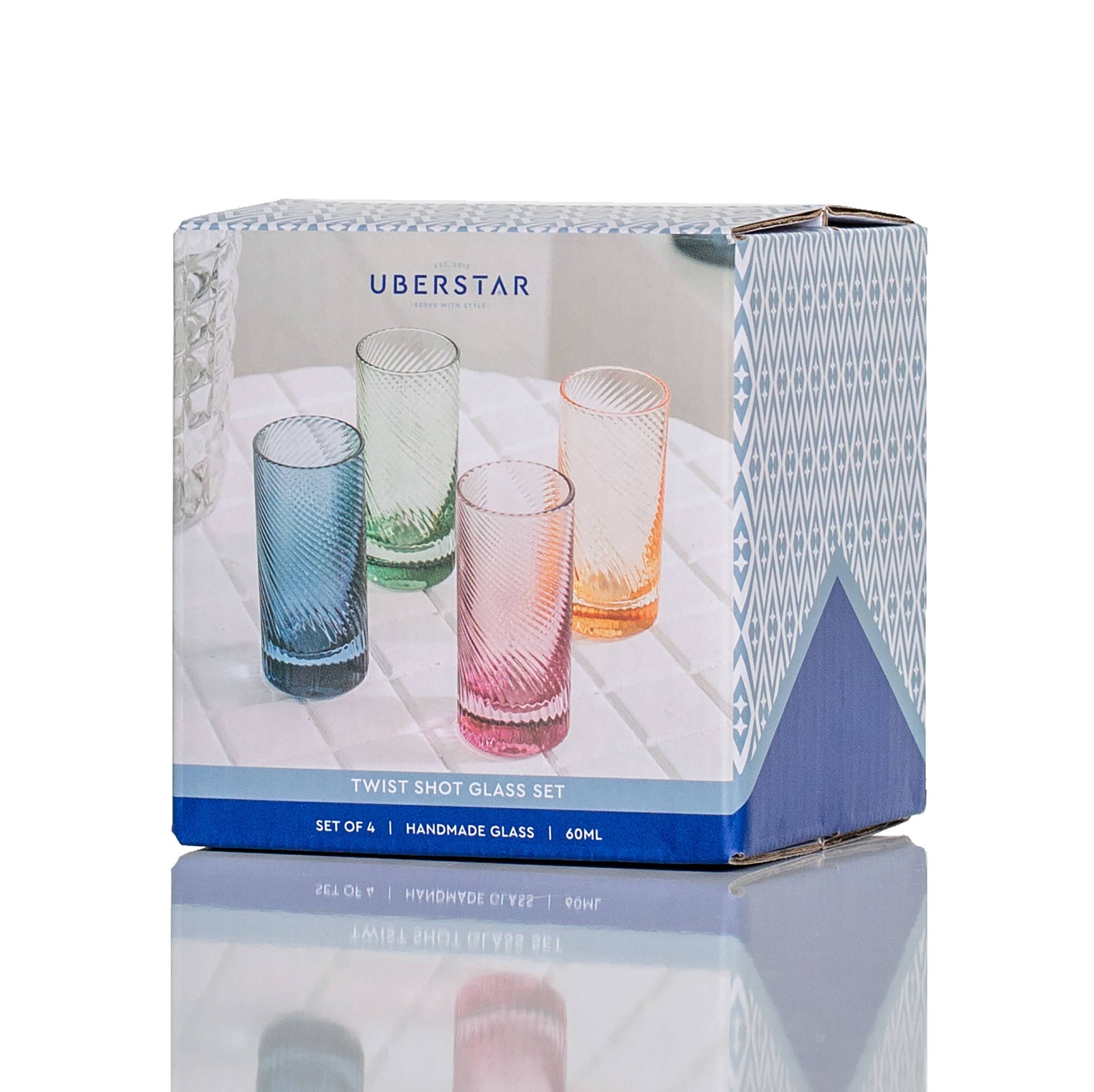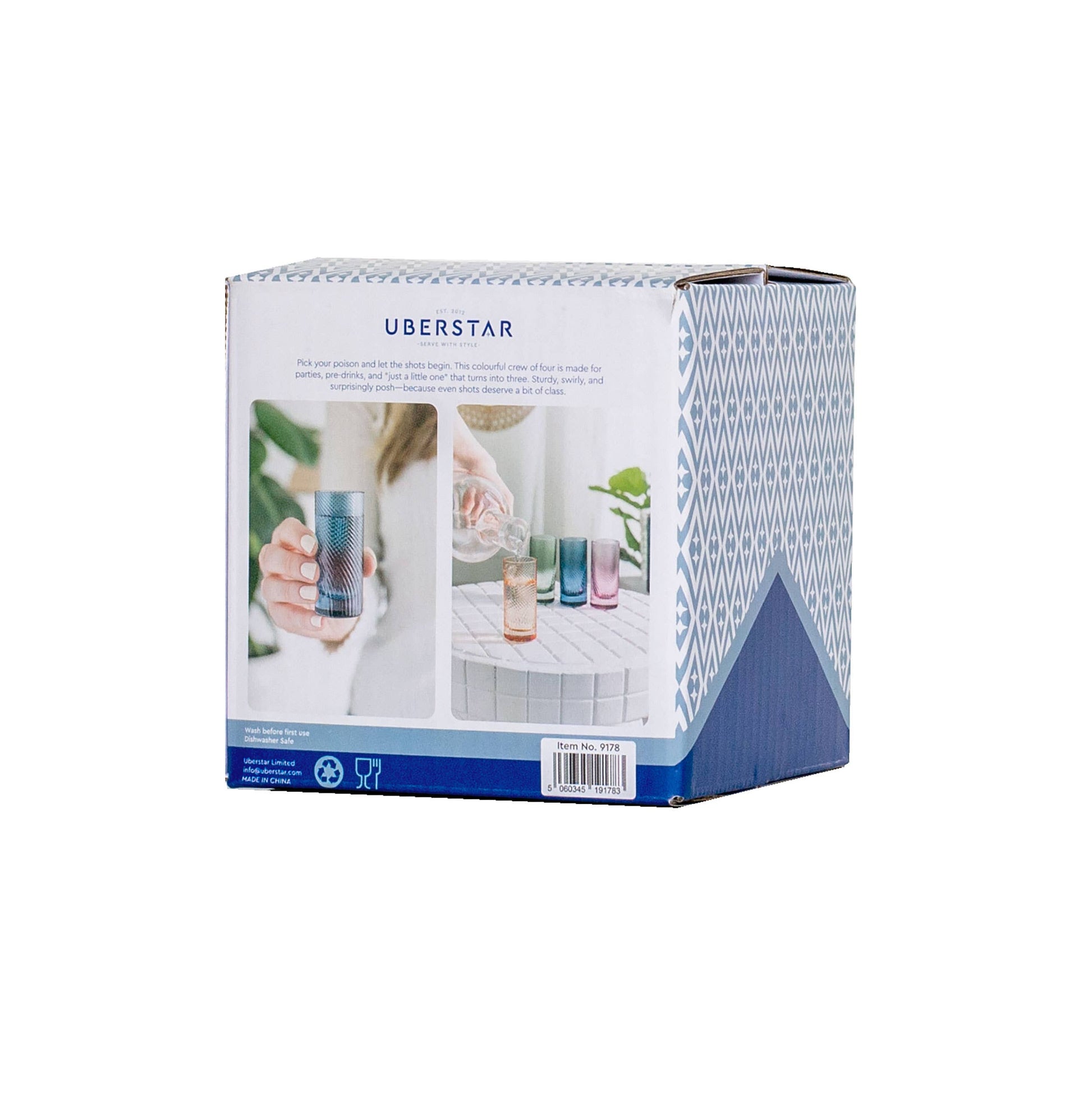 This colourful crew of four is made for parties, pre-drinks and more. Sturdy, swirly, and surprisingly posh—because even shots deserve a bit of class. Each shot glass is handmade, meaning every swirl is delightfully one of a kind..
